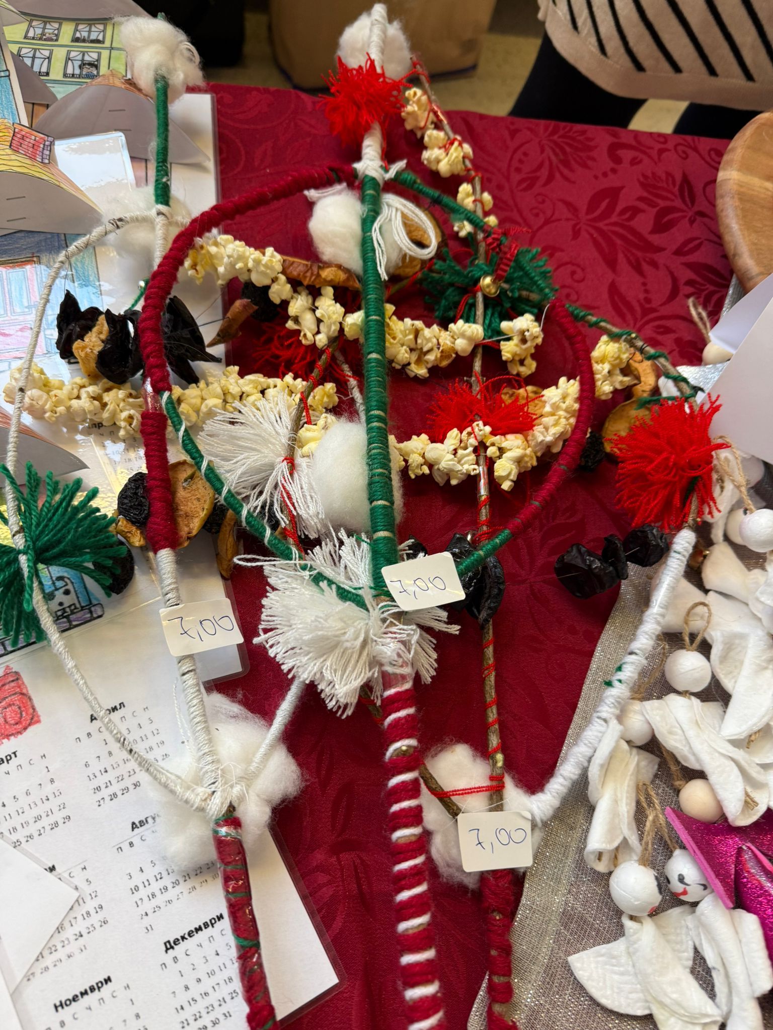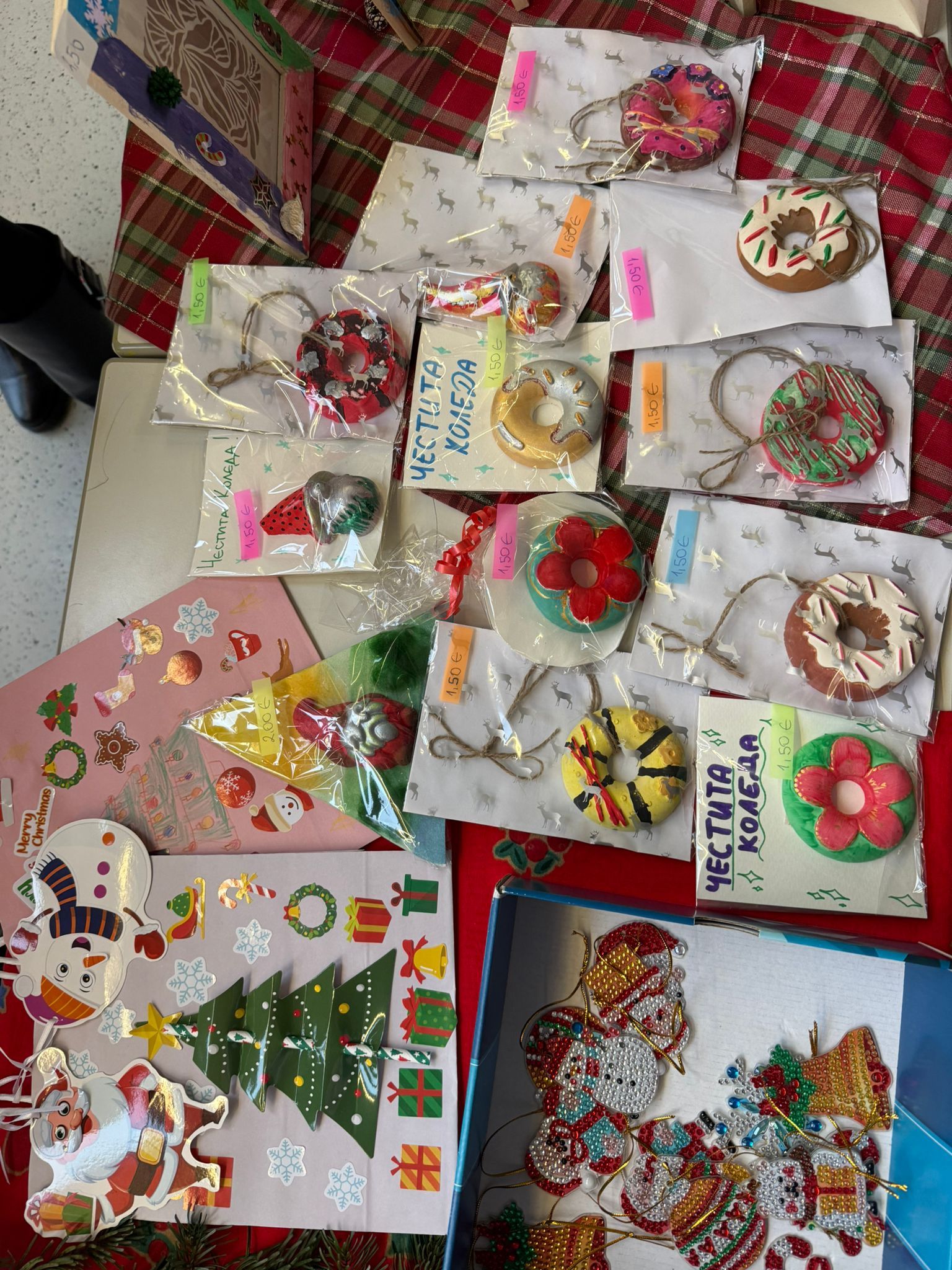Паралелно с концерта се проведе и Коледен базар, на който бяха изложени ръчно изработени коледни сувенири, картички и сурвакници. С много старание, въображение и любов децата вложиха своя талант, превръщайки базара в истински празник на творчеството, доброто настроение и споделената радост.