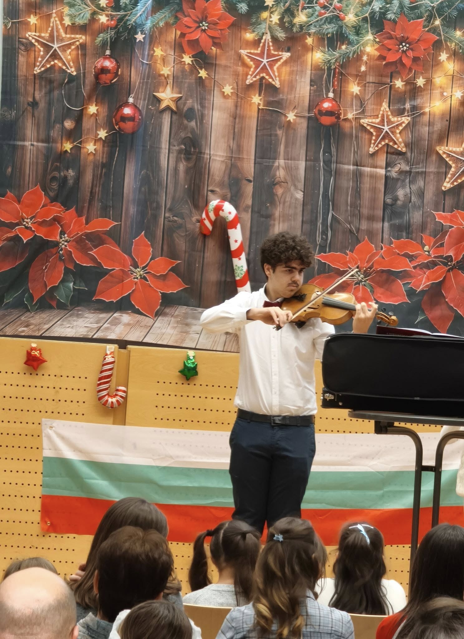 Емоционален завършек на тържеството постави вълнуващо изпълнение на цигулка от двама наши ученици, което създаде незабравим финал на празничната вечер.