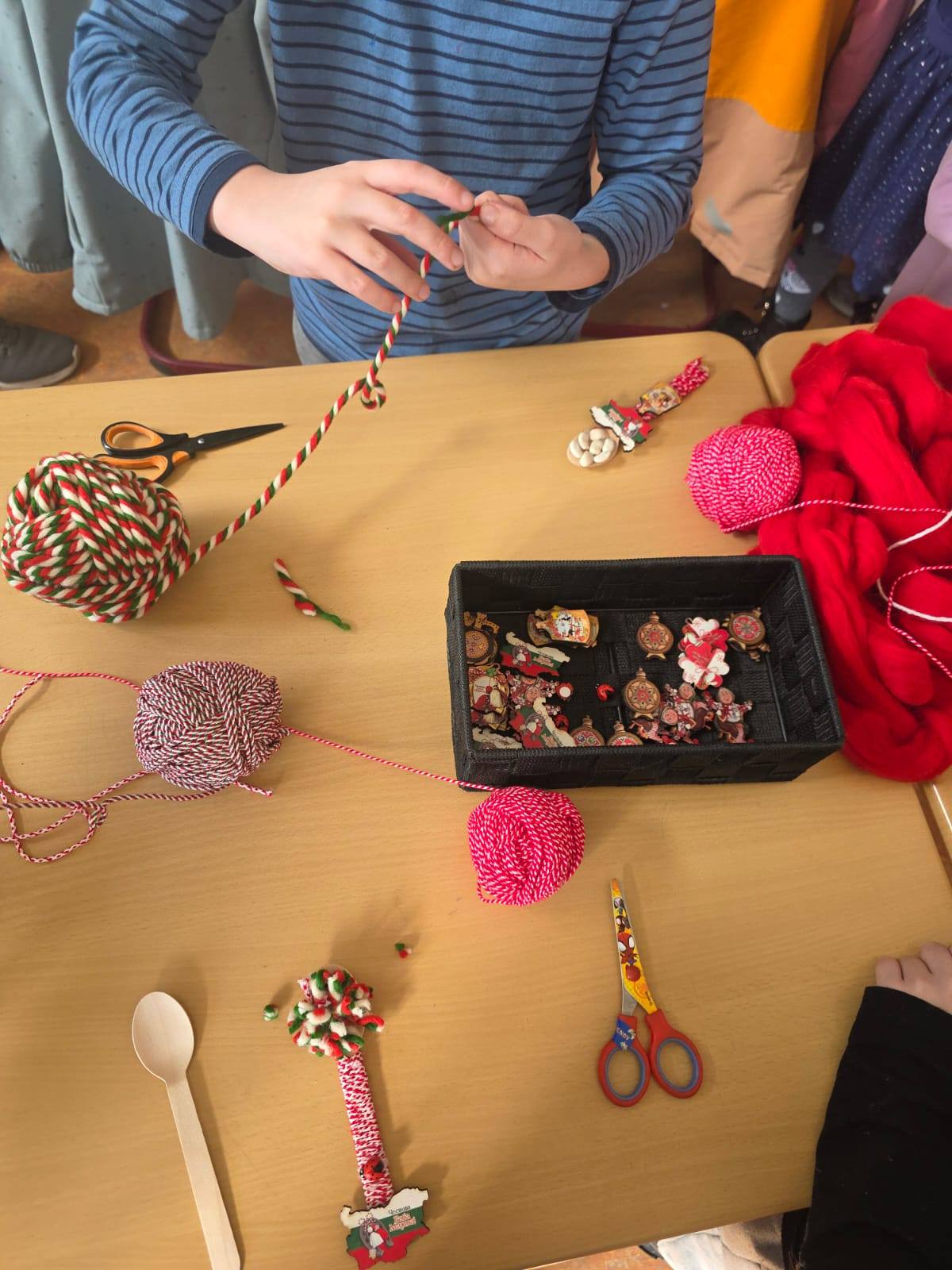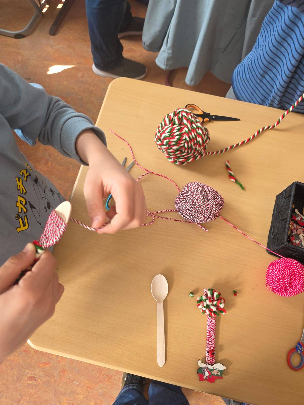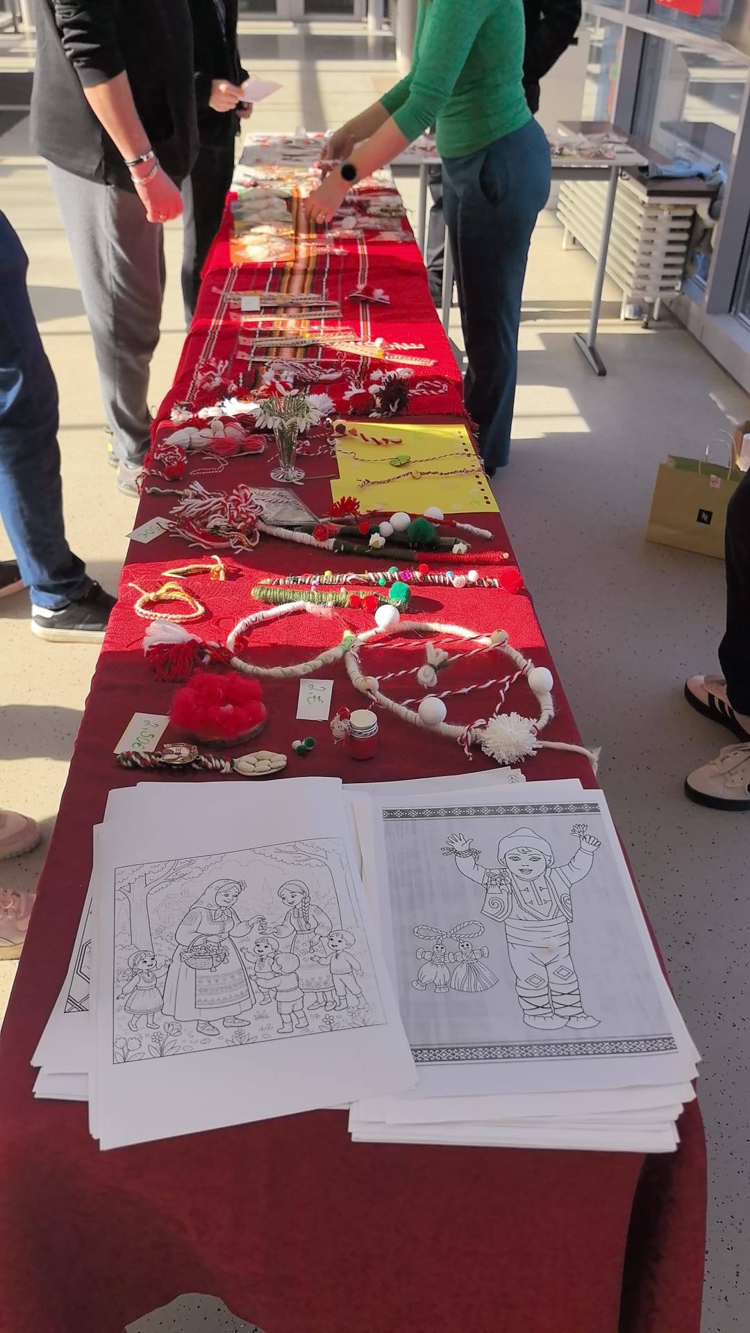 Нашите възпитаници я посрещнаха с песни и стихчета, посветени на пролетта, а празничната атмосфера вдъхнови всички да се включат в изработката на мартеници за традиционния училищен базар. Точно в 12:30 часа базарът отвори врати, а щандовете се изпълниха с красиви и оригинални мартеници, сътворени с много старание.
